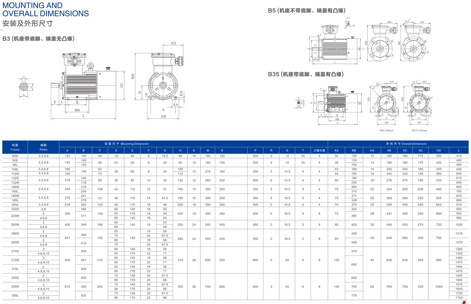 YFBBP3系列粉塵防爆型變頻調速三相異步電動機為全封閉強制風冷式三相異步電動機具有調速性能好,節能高效,結構緊湊,溫升裕度大,壽命長,性能好,振動小,噪聲低,防爆結構先進,外形美觀,可靠性高等優點,且設有不停機的注油裝置,并可根據用戶需要,增加軸承測溫、定子測溫、防潮加熱器等功能。本系列電動機符合國家標準GB12476.1《可燃性粉塵環境用電氣設備 第1部分:通用要求 》和GB12476.5-2013《可燃性粉塵環境用電氣設備 第5部分:外殼保護型“D”》的規定。防爆標志為EXtD A21IP65T135C、EXtD A22P55T135C,使用在有爆炸性粉塵混合物環境的場所做動力拖動之用。/p>